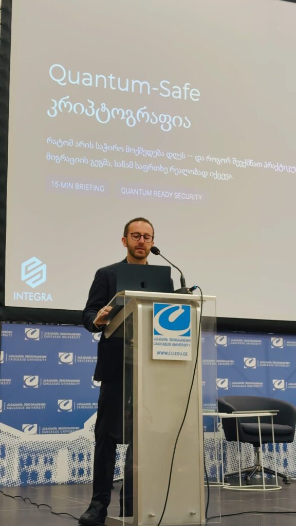 ლაბორატორიის გახსნაზე ინტეგრას დირექტორმა, იგორ დოლოტოვსკიმ, წარადგინა პრეზენტაცია „Quantum-Safe კრიპტოგრაფია: რატომ უნდა ვიმოქმედოთ დღეს“, ხოლო ლაბორატორიის მუშაობა პრაქტიკულად აჩვენა პროფესორმა მაქსიმ იავიჩმა, საქართველოს მეცნიერებათა აკადემიის წევრ-კორესპონდენტმა.